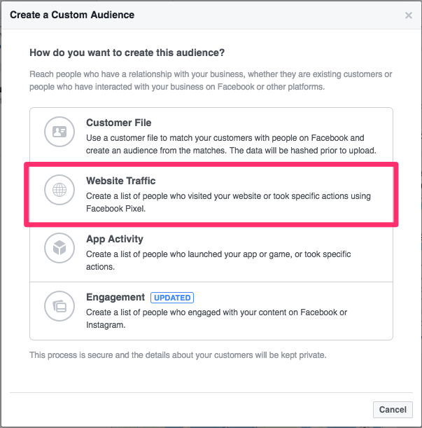 - Website traffic: Based on the data of the Facebook pixel.